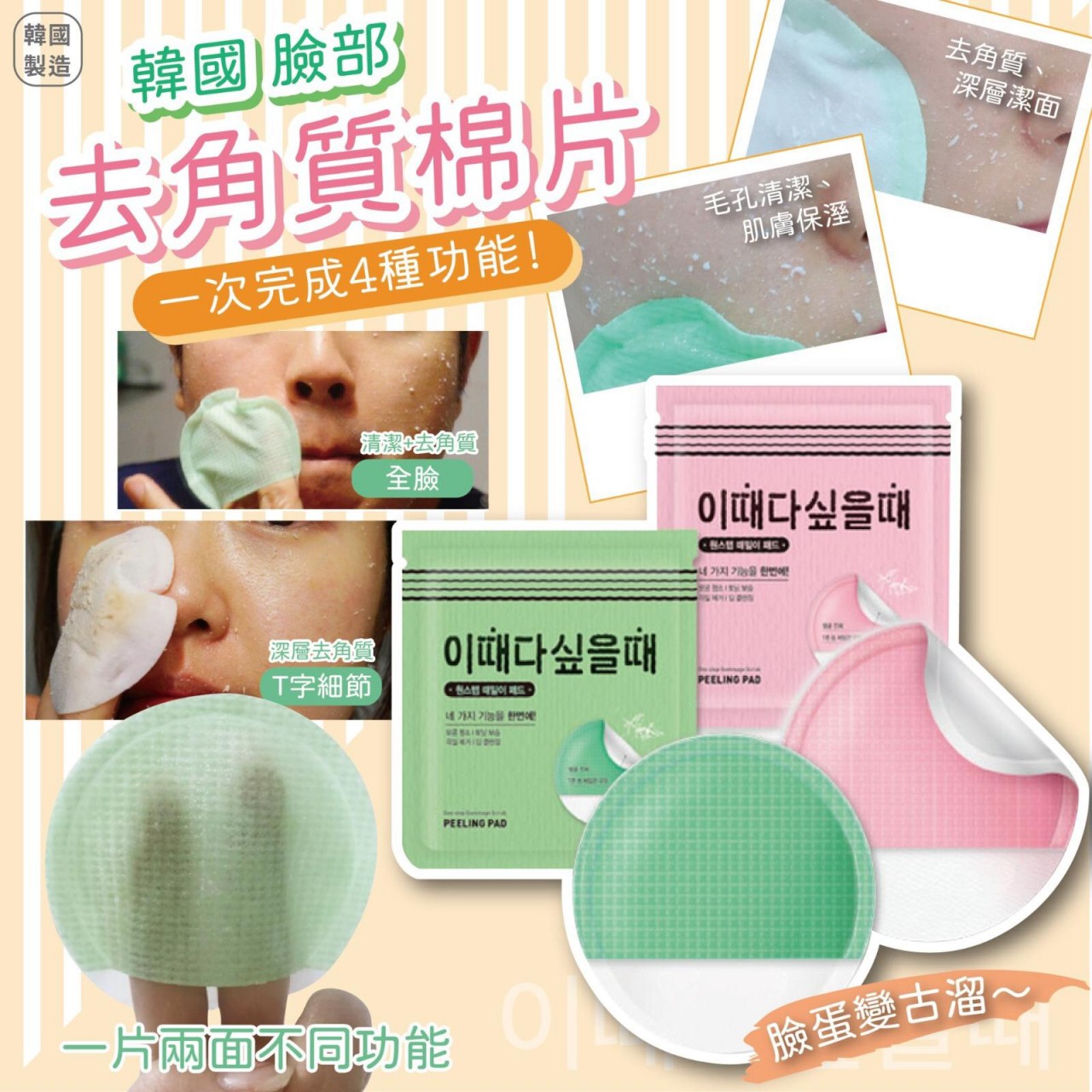 臉部去角質棉片,一片都有兩面不同功能唷